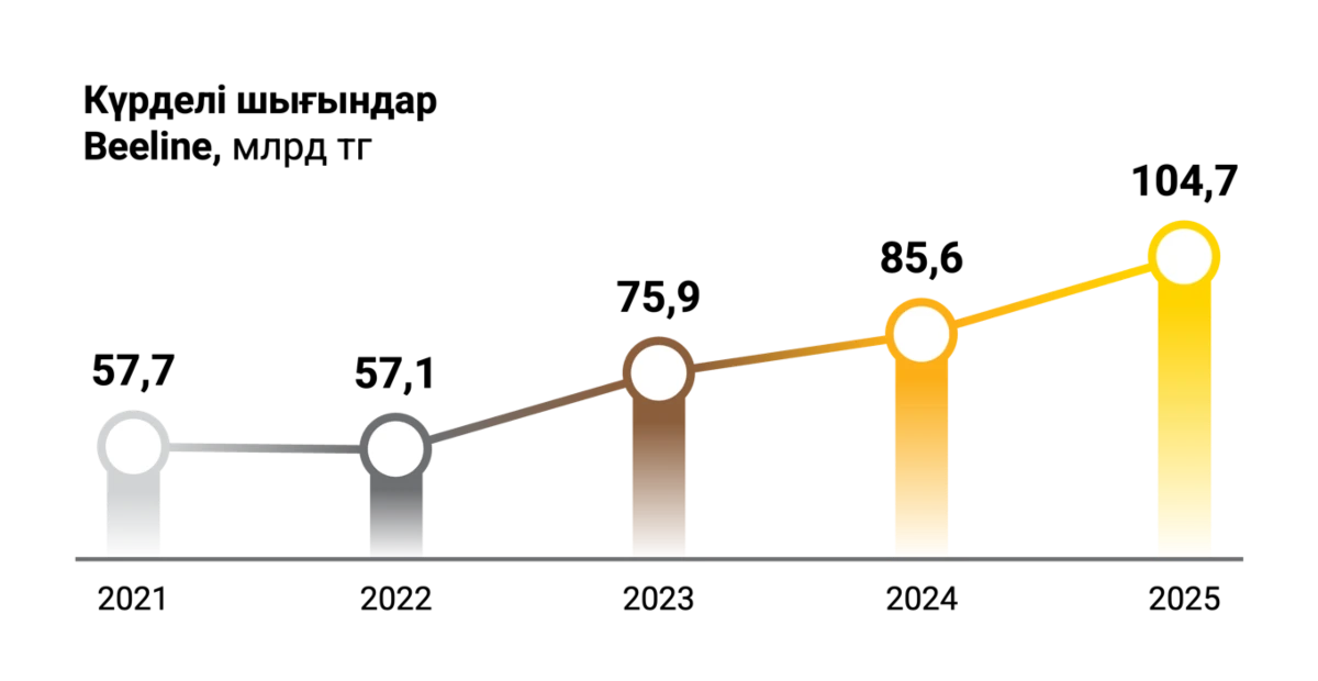 Абоненттік база мен трафик тұтыну көлемі артқан тұста қызмет көрсету сапасын қамтамасыз ету үшін компания желінің қамту аумағын кеңейтуді, байланыстың қолжетімділігі мен таралу деңгейін бүкіл Қазақстан бойынша арттыруды жалғастырып келеді. Өткен жылы оператор желісінде 500 жаңа базалық станция пайда болды. LTE желісі бұрын кең жолақты мобильді интернет болмаған, 180 мың тұрғыны бар 240 жаңа ауылға жеткізілді. 2025 жылы компанияның күрделі шығындары (CAPEX) 104 млрд теңгені құрады. Бұл көрсеткіш жыл сайын дәстүрлі түрде артып келеді және компанияның желіні дамыту мен байланыс сапасын жақсарту жолында атқарған жұмыстарын айқын көрсетеді. Соңғы алты жылда компания 430 млрд теңгеден астам инвестиция салды.