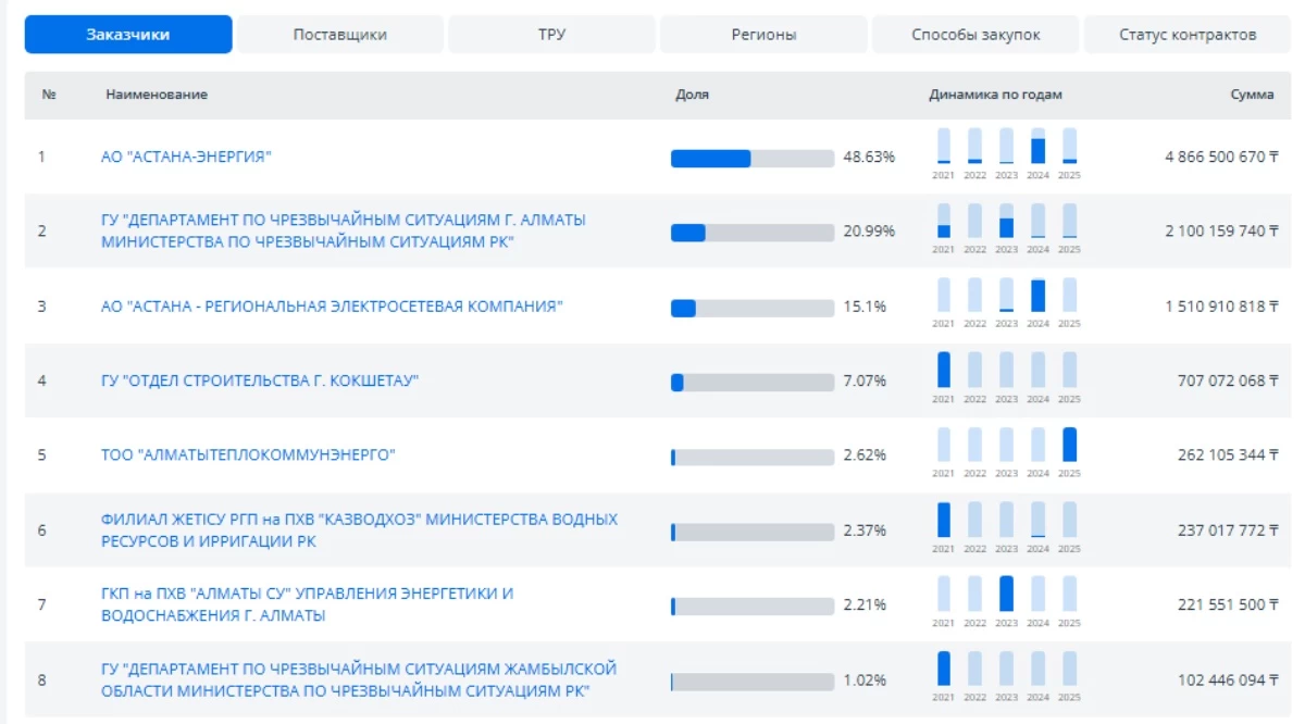 Маңызды серіктестердің бірі Алматы қаласы төтенше жағдайлар департаменті (ҚР ТЖМ), оған шамамен 2,1 миллиард теңге тиесілі. Сондай-ақ компания "Астана – Өңірлік электр желілік компаниясы" АҚ-пен де табысты жұмыс істеп келеді. Бұл бағыттағы келісімдер көлемі 1,51 миллиард теңгеге шамалас.