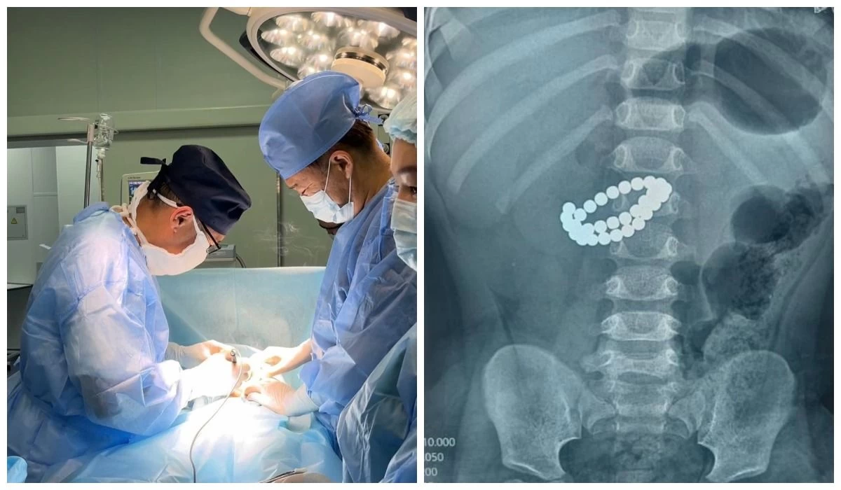 Алматы әкімдігінің мәліметінше, бала 31 магнит жұтып қойып, ішегіне ауыр зақым келіп, перитонит белгілерімен өте ауыр жағдайда жеткізілген.