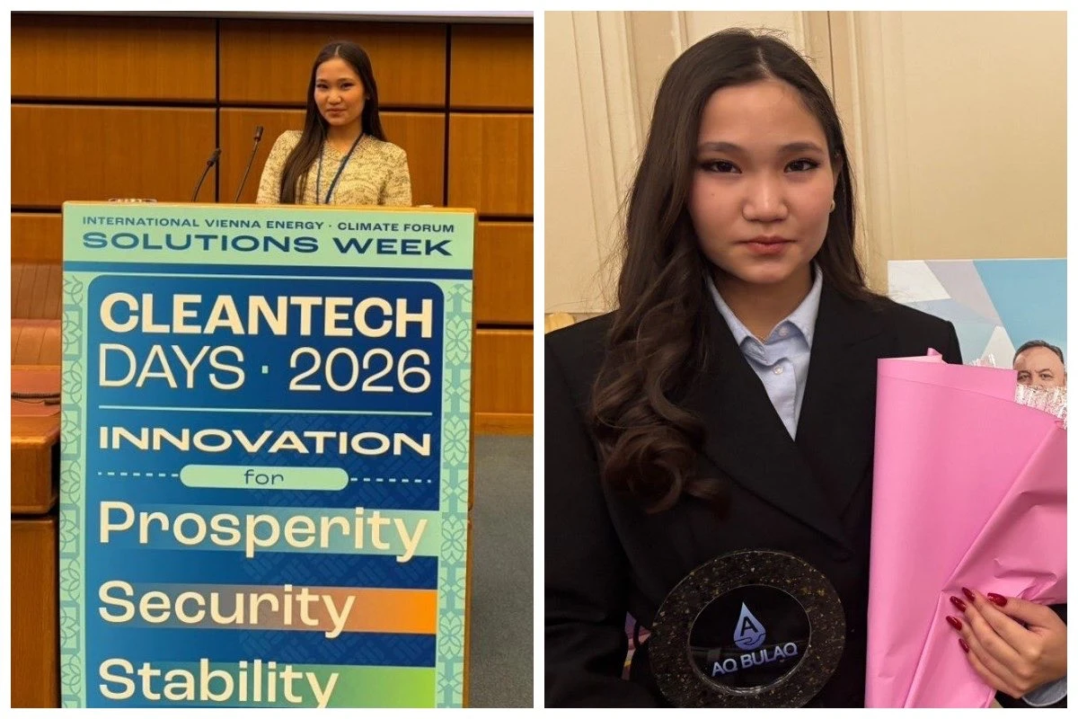 Алматылық оқушы Дана Қадырбек Венадағы БҰҰ штаб-пәтерінде Cleantech Days Forum 2026 форумында әлемнің үздік үш жас өнертапқышының қатарына енді.