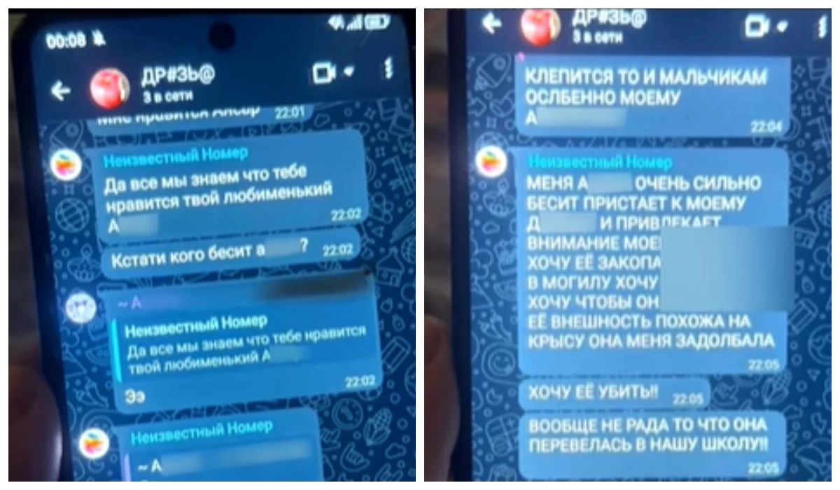 Әлеуметтік желіде тараған хат алмасу скриншоттарынан екінші сынып оқушылары түнгі уақытта жәбірленуші қызға “жек көремін”, “өлтіреміз”, “қабірден көргіміз келеді” сияқты ауыр сөздер жазғанын көруге болады.
