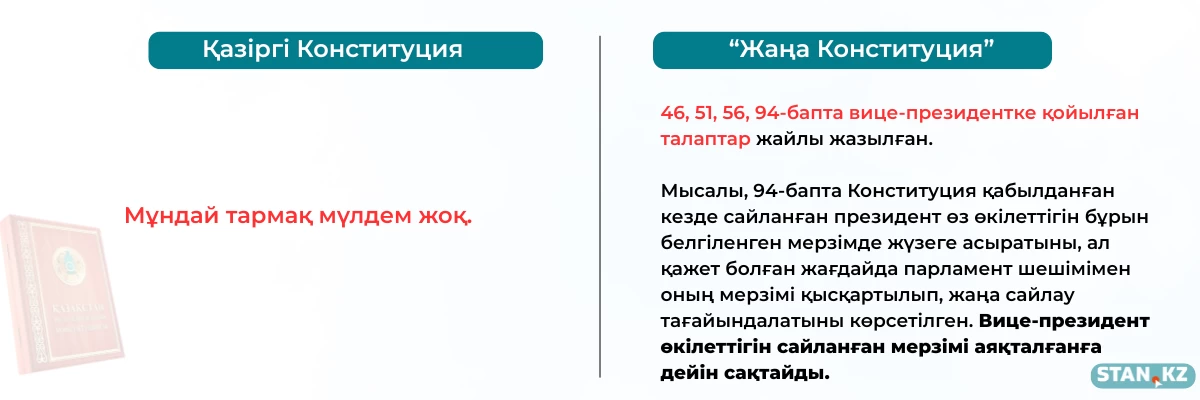 Жаңа Конституцияда 49-баппен вице-президент институты енгізіледі. Сөйтіп, вице-президент: