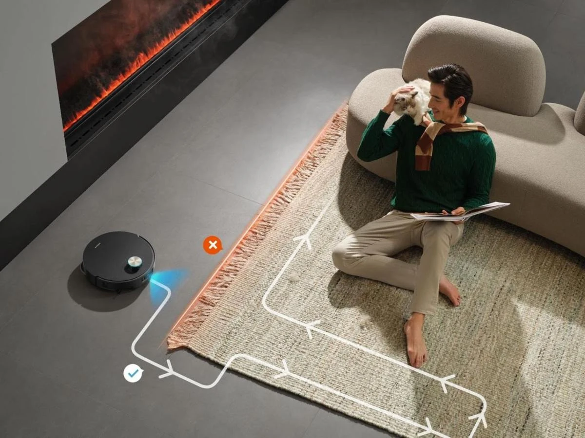 X60 Ultra Complete модельінің ақылды екеніне бір мысал: ол айналасындағы кеңістікті алдын ала барлап, кедергілерді сол арқылы айналып өтеді. Ол мұны AI OmniSight™ жүйесі арқылы іске асырады, яғни әрқайсысы 120° болатын екі кең бұрышты камера 3D карта жасап, 10 миллиметрден бастап 280+ түрлі кедергіні анықтайды. Алдында сым тұр ма, қағаз ба, басқа ма, бәрін көріп тұрады. Робот қара дақтарды ғана емес, ашық түсті сұйықтықты, шаш пен ұсақ бөлшектерді де таниды. Соған байланысты құрғақ немесе дымқыл тазалау режимін өзі таңдайды.