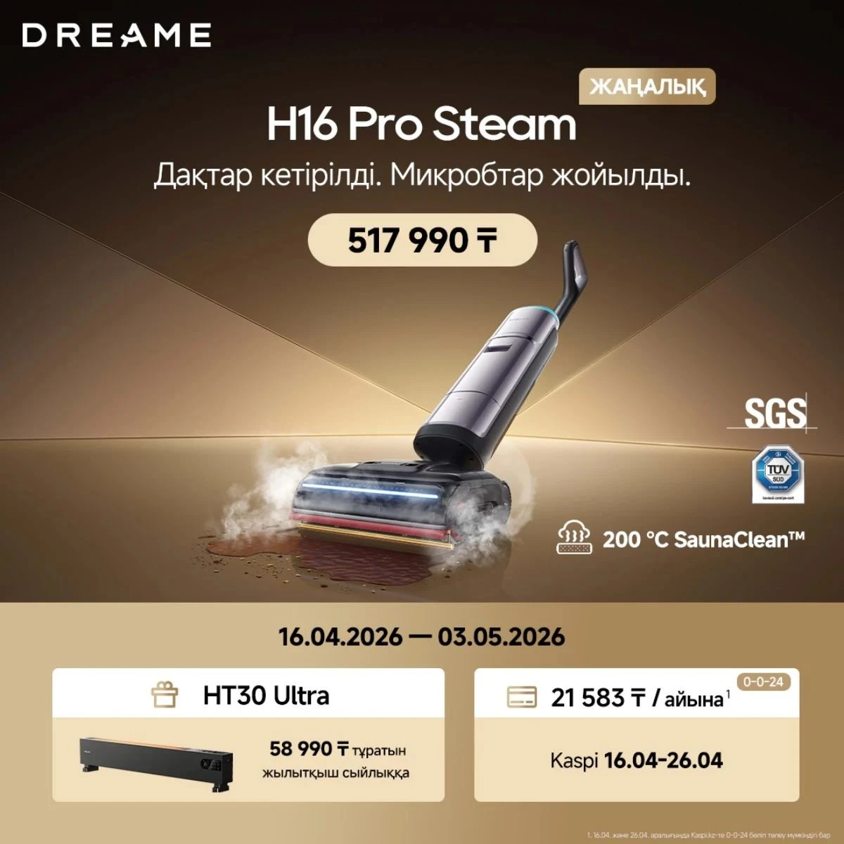Айта кетері, H16 Pro Steam құрылғысын 517 990 теңгеге сатып алсаңыз, бонус ретінде HT30 Ultra жылытқышы беріледі. Осылайша 58 990 теңгеге дейін үнемдейсіз.