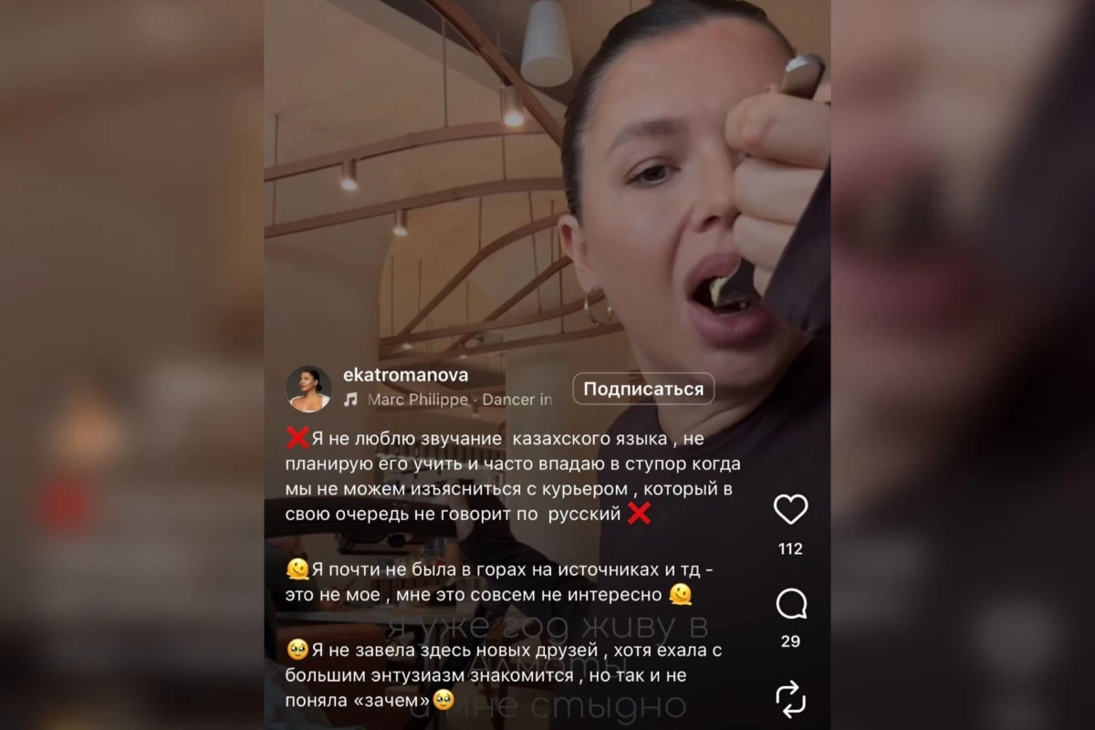 Әлеуметтік желіде блогер Екатерина Романованың "маған қазақ тілінің дыбысталуы ұнамайды, оны үйренгім келмейді" деген сөзі қызу талқыланып жатыр. Пікір қазақстандықтардың наразылығын туғызып, қоғамда қызу талқыланып жатыр. Бұл туралы Stan.kz ақпарат агенттігі хабарлайды.