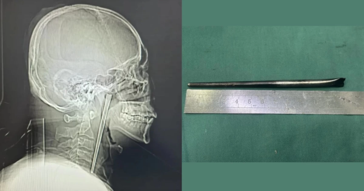 Ер адам ауруханаға тамағы қатты ауырғаннан кейін жүгінген. Дәрігерлер тексеру барысында оның жұтқыншағында ұзындығы 12 см болатын темір таяқша бар екенін анықтаған.