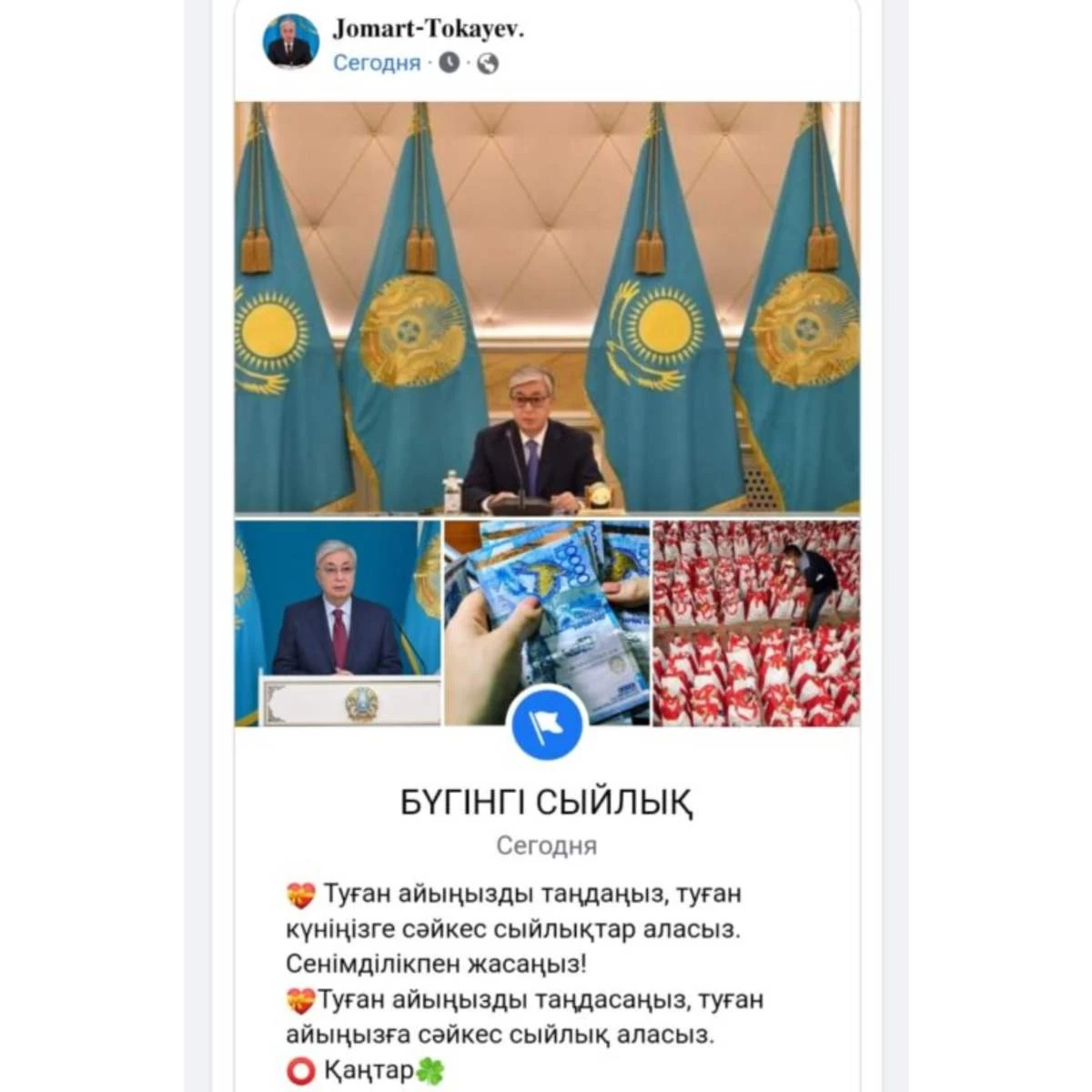 "Jomart-Tokayev-тан ақшалай сыйлық": Facebook желісінде алаяқтар мемлекет басшысының атынан ұтыс ойынын өткізуде