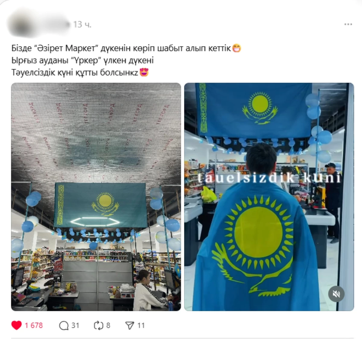 “Біз де “Әзірет Маркет” дүкенін көріп шабыт алдық. Ырғыз ауданы “Үркер” үлкен дүкені. Тәуелсіздік күні құтты болсын”, – деп жазды олар.