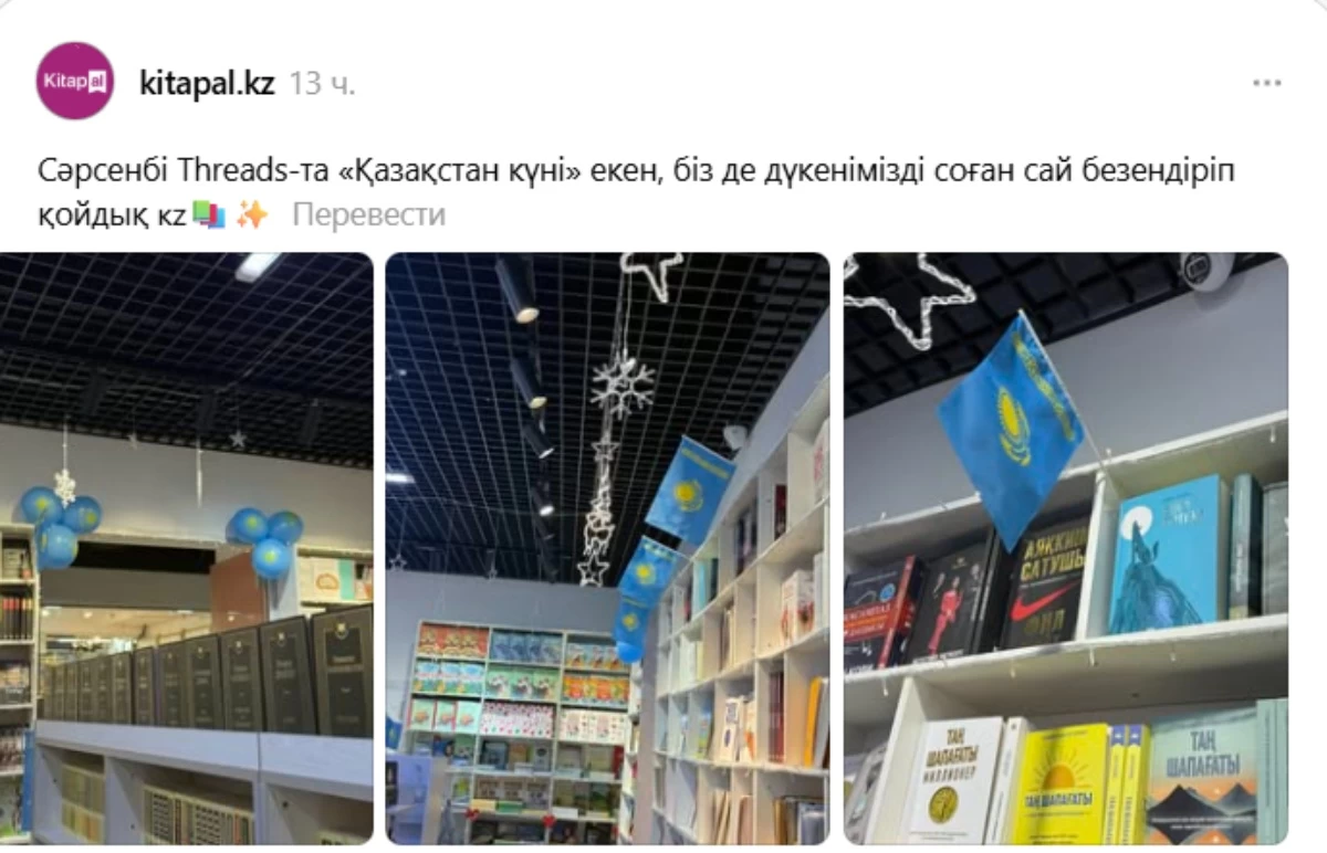 Бұл бастамаға КітапАл дүкені де үлес қосты. Олар: 1Сәрсенбі Threads-те “Қазақстан күні” екен. Біз де дүкенімізді соған сай безендіріп қойдық”, деп жазды.