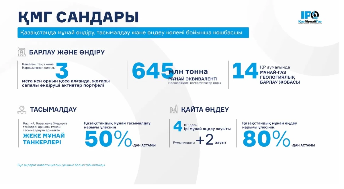 Елімізде биыл өтейін деп жатқан IPO-ға дайындық қыркүйекте басталып кетті. Осымен төртінші рет ұйымдастырылатын IPO-ға бұл жолы “ҚазМұнайГаздың” (ҚМГ) акциялары шығарылмақ. Бағалы қағаздар отандық KASE және AIX биржаларында орналастырылады деп күтілуде. Жеке инвесторлар компания сауда нарығына шықпай тұрып, қатысуға өтініш бере алады.