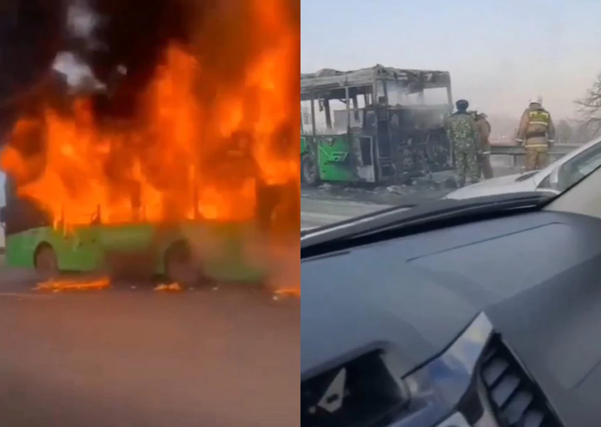 Алматыда көше ортасында қоғамдық көлік жанып, жарылып кетті