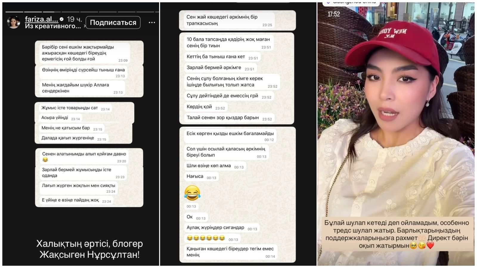 "Бұлай шулап кетеді деп ойламадым, әсіресе, тредс шулап жатыр. Барлықтарыңыздың қолдауларыңызға рахмет. Директе бәрін оқып жатырмын", - деп жазды Фариза.