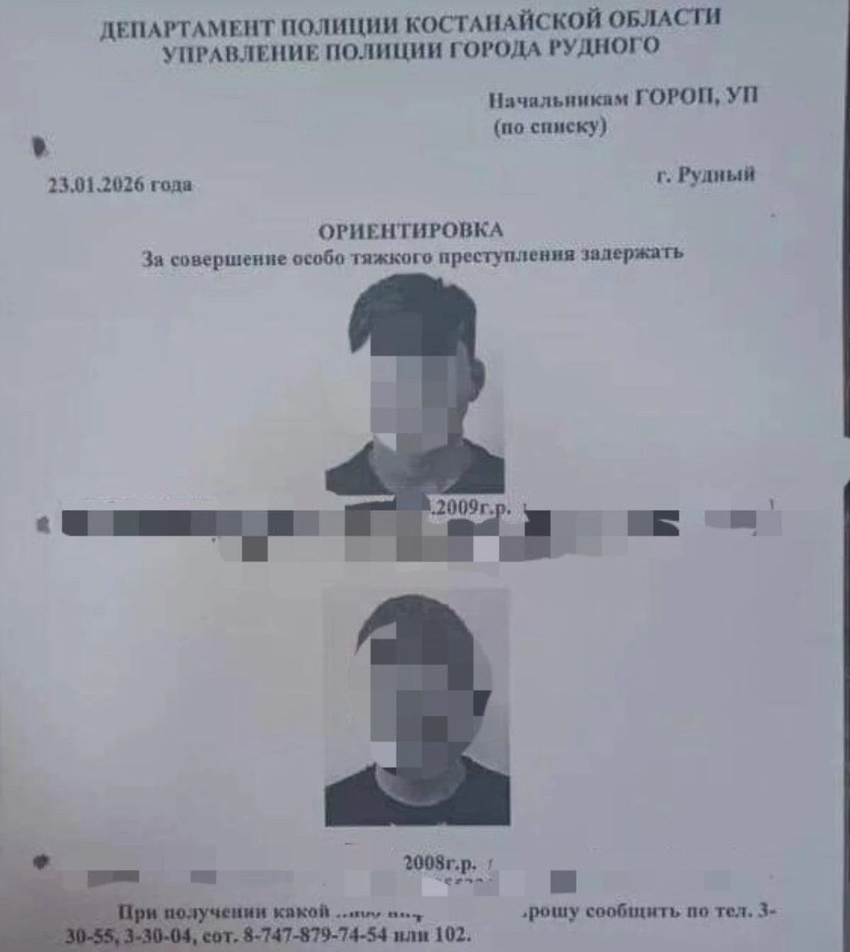 Желіде тараған ақпаратқа сәйкес, полиция шамамен 17 және 18 жастағы екі жас жасөспірімге іздеу жариялаған. Жасөспірімдер 20 жастағы жігітті өлтірді деген күдікке ілінген.
