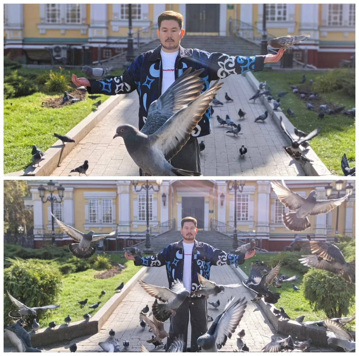 Адамның ғана емес, құстардың қозғалысын қалай дәл бейнелегені кадрлардан көрініп тұр. Бұлдырап кеткен кадрлар өте аз болды.