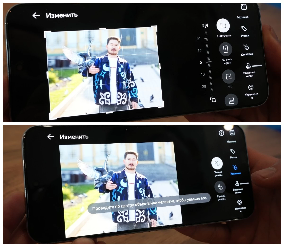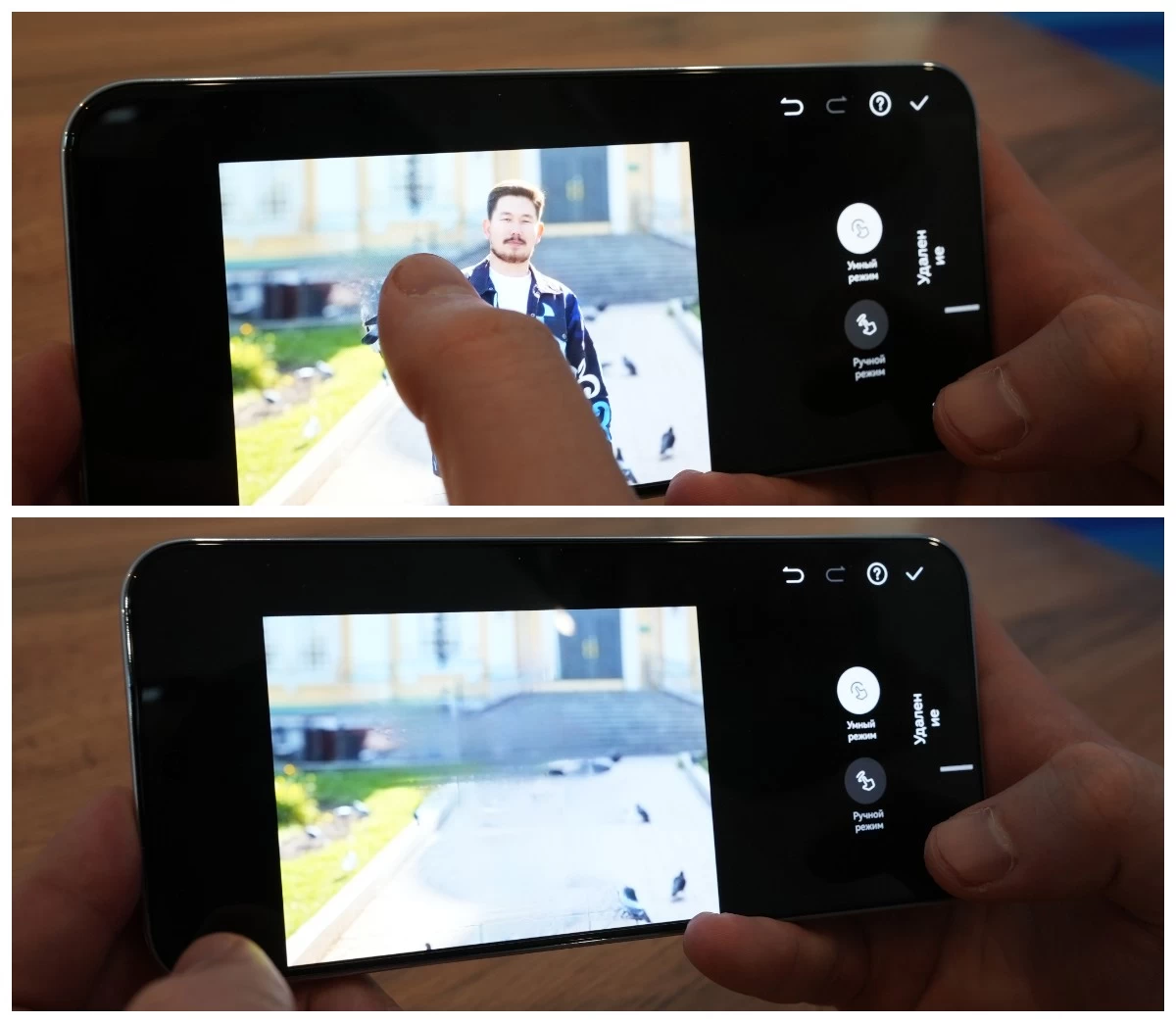 Фотоңыздан қажетсіз нысандарды – кездейсоқ өтіп бара жатқан адамдарды, жол белгілерін, сымдарды, қоқыс не контейнерлерді алып тастау үшін ЖИ негізіндегі артық объектілерді жою функциясын пайдалануға болады.