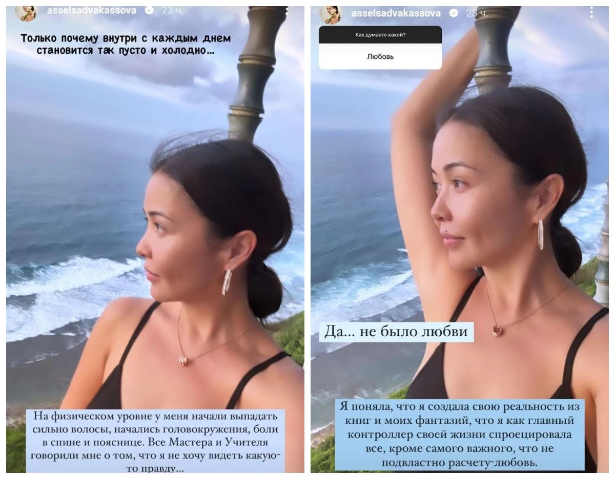 “Мінсіз көрініс – мінезі, жақсы қасиеттері, маған деген қарым-қатынасы, сырт келбеті, барлығы мен армандағандай. “Әсел, қуанып, өмір сүр, болашағыңды жоспарла, арақатынастың келесі сатысына өту керек” дедім өзіме. Алайда іштей жан дүнием қуыстанып, салқындықты сездім. Шашым түсіп, басым айнала бастады. Арқам, белім ауырып жүргенін байқадым. Ұстаздарым маған “Сен қандай да бір шындықты көргің келмейді” деді. Мен жіберген қателігімді мойындағым келмеді, шындыққа тура қарай алмадым”, – дейді Әсел.