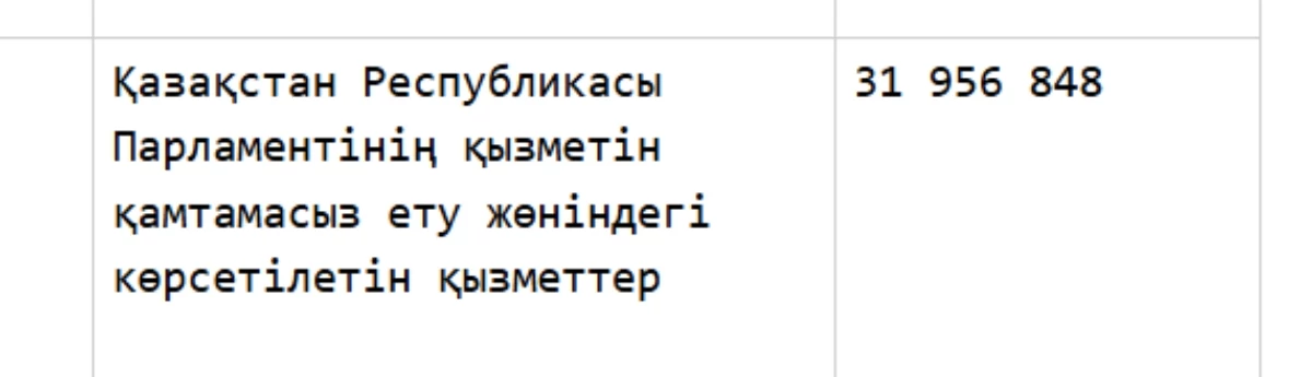 Парламент қызметін қамтамасыз етуге – 31 956 848 694 теңге.