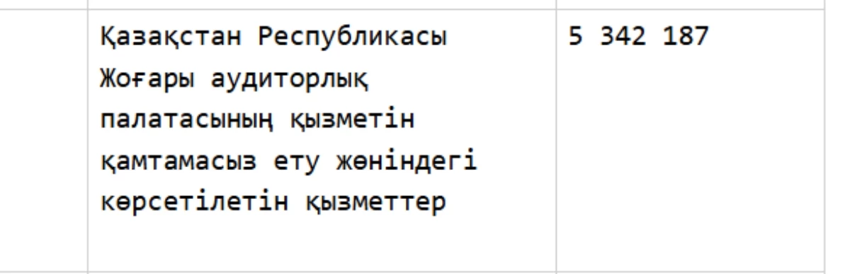 Жоғары аудиторлық палатаның қызметін қамтамасыз етуге – 5 342 187 007 теңге.