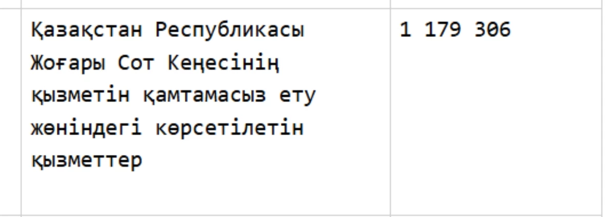 Жоғары Сот Кеңесінің қызметін қамтамасыз етуге – 1 179 306 109 теңге бөлінген.