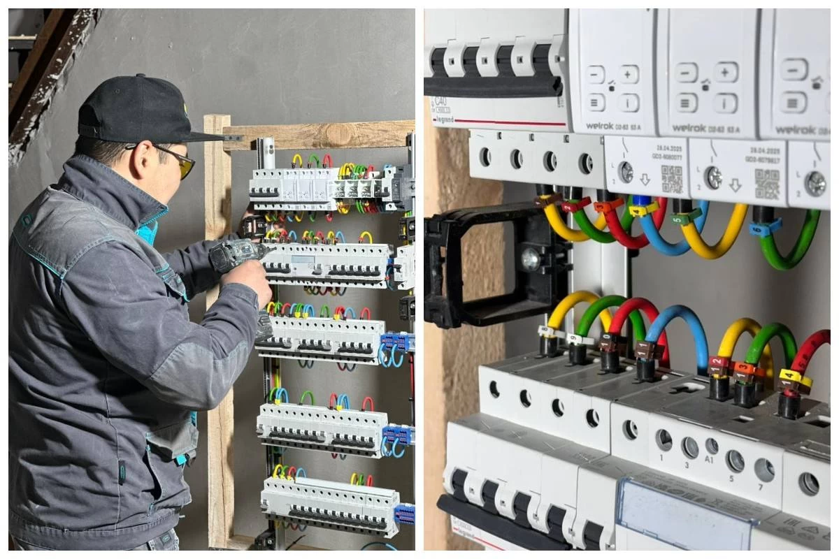 "Біз 2018 жылдан бері Қарағандыда электромонтаж жұмыстарымен айналысып келеміз. Осы уақыт аралығында 300-ден астам үйге электромонтаж жұмыстарын жүзеге асырдық. Жаңадан салынған үйлерде де, кеңес дәуірінен қалған ескі үйлерде де жұмыс істедік. Көп жағдайда алюминий сымдарды мысқа ауыстыруға тура келеді. Үйге жөндеу жүргізгенде ең алдымен электр монтажына аса мән беру қажет. Себебі көп адам арзан, сапасыз, сертификаты жоқ автоматтар мен кабельдерді орнатады. Мұндай материалдар бірнеше жылдан кейін қызып, балқып, істен шығады, кейін соның салдарынан өрт болуы мүмкін. Сонымен қатар бір электр розеткасына бірнеше техника қосу да өте қауіпті. Ол жүктемені көтере алмай, уақыт өте келе балқып, отқа айналады", – деді электромонтажшы.
