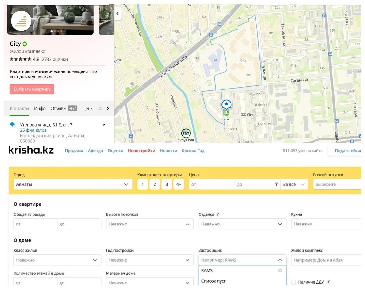 Фото: 2GIS және krisha.kz сайттарынан скриншот