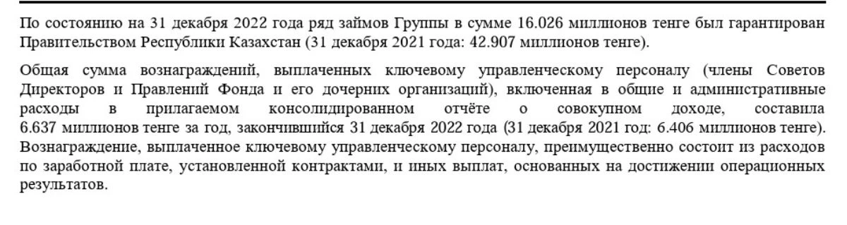 Ал 2023 жылы Қор мен оның еншілес ұйымдарының директорлар кеңесі мен басқарма мүшелеріне 7 миллиард 649 миллион теңге көлемінде сыйақы төленген.