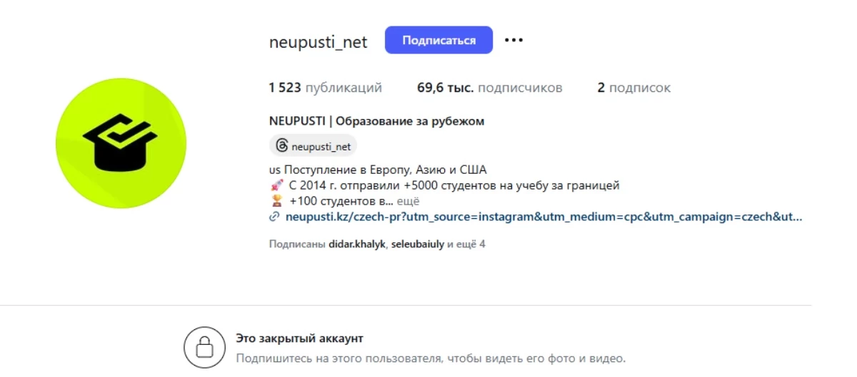 Neupusti компаниясы әлеуметтік желілерде 5000-нан астам талапкердің Еуропа, АҚШ және Қытайдағы университеттерге оқуға түсуге көмектескенін хабарлаған. Алайда соңғы айларда компаниядан зардап шеккендер саны күрт артқан. Жүздеген клиент миллиондаған теңге төлегенімен, шетелдік жоғары оқу орындарына түсе алмаған. Зардап шегуші Тамила Тагиева Словакиядағы университетке түсу үшін осы компанияға жүгініп, шамамен 1,5 миллион теңге төлеген. Оған тіл курстары мен толық қолдау көрсетеміз деп уәде етілген. Бірақ ақша алған соң компанияның жұмысы тоқтап қалған.
