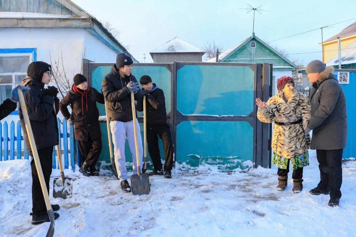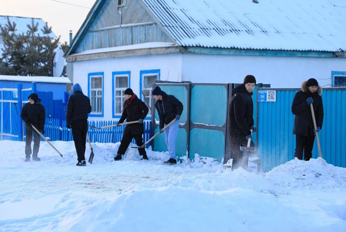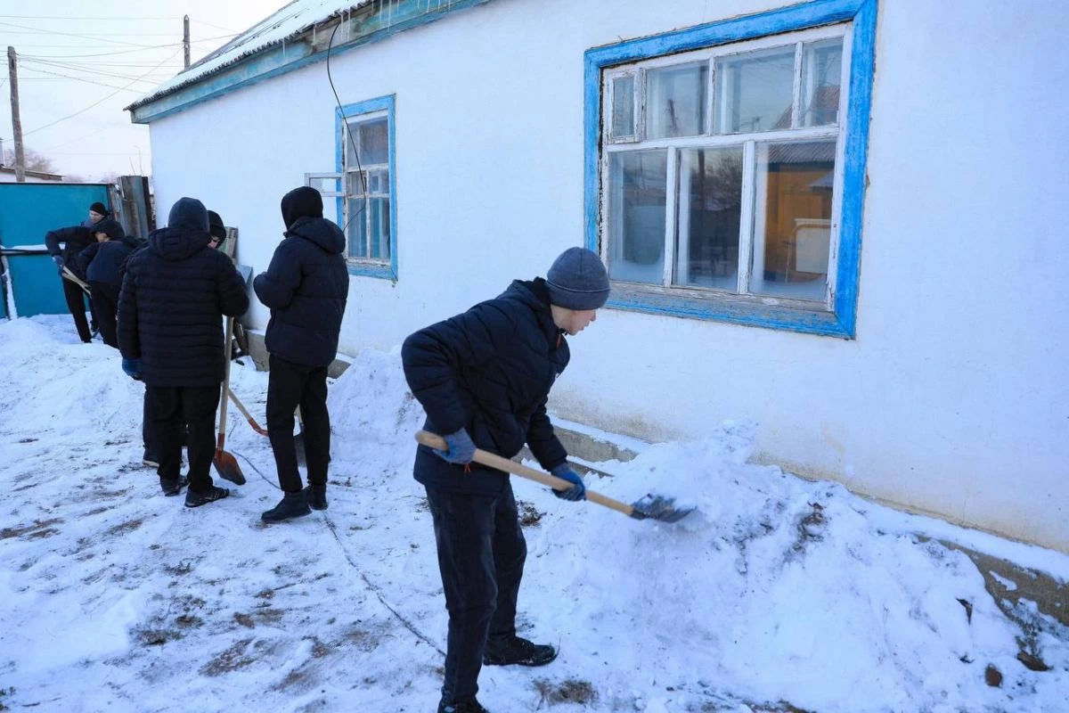 "Таза аула – аға ұрпаққа қамқорлық": Ақтөбеде "Таза Қазақстан" акциясының аясында еңбек ардагерлерінің аулалары қардан тазартылды