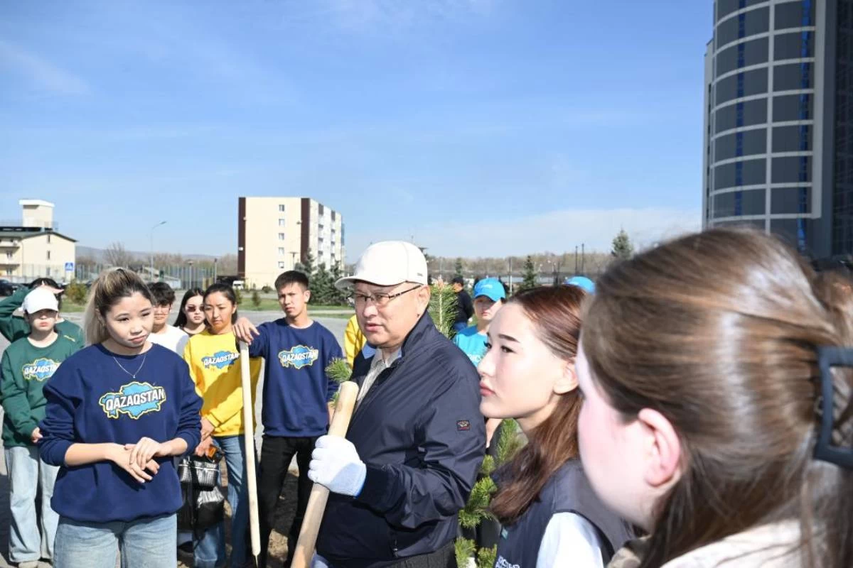 Жасыл желектерді егіп болған соң өңір басшысы сенбілікке келген жастармен әңгімелесіп, өскелең ұрпақтың жан-жақты дамуының маңыздылығын атап өтті.