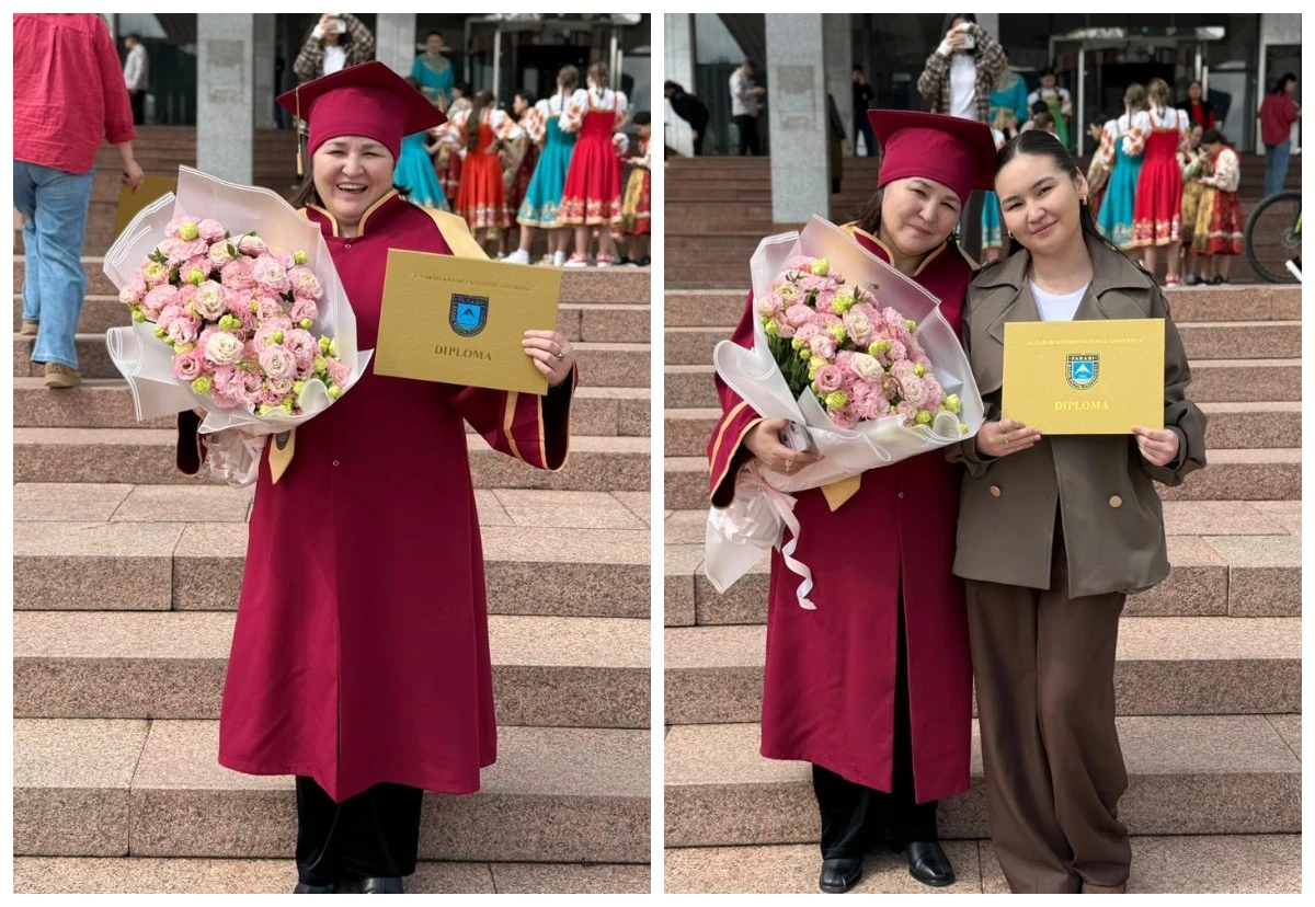 Бұл шешімге өзі келді. Себебі қазір колледж дипломы жарамай бара жатыр. Оның үстіне болашақта зейнетке шыққаннан кейін де колледжге мұғалім болып, өз білгенімді жастарға үйретсем деген ойы бар. Сол үшін бакалаврдың, магистрдің дипломдары қажет болып оқимын деп шешім қабылдады. Біз оқу бітіріп диплом алған кезде анамыз әрдайым жанымыздан табылатын. Сосын біз де ол диплом алған кезде ерекше әсер сыйлайық дедік. Негізі анам диплом алуға кетерінде бізге “келмей-ақ қойыңдар” деген. Алайда бәрібір біз тосынсый жасап барайық деп шештік”, – деді қызы Әмина.