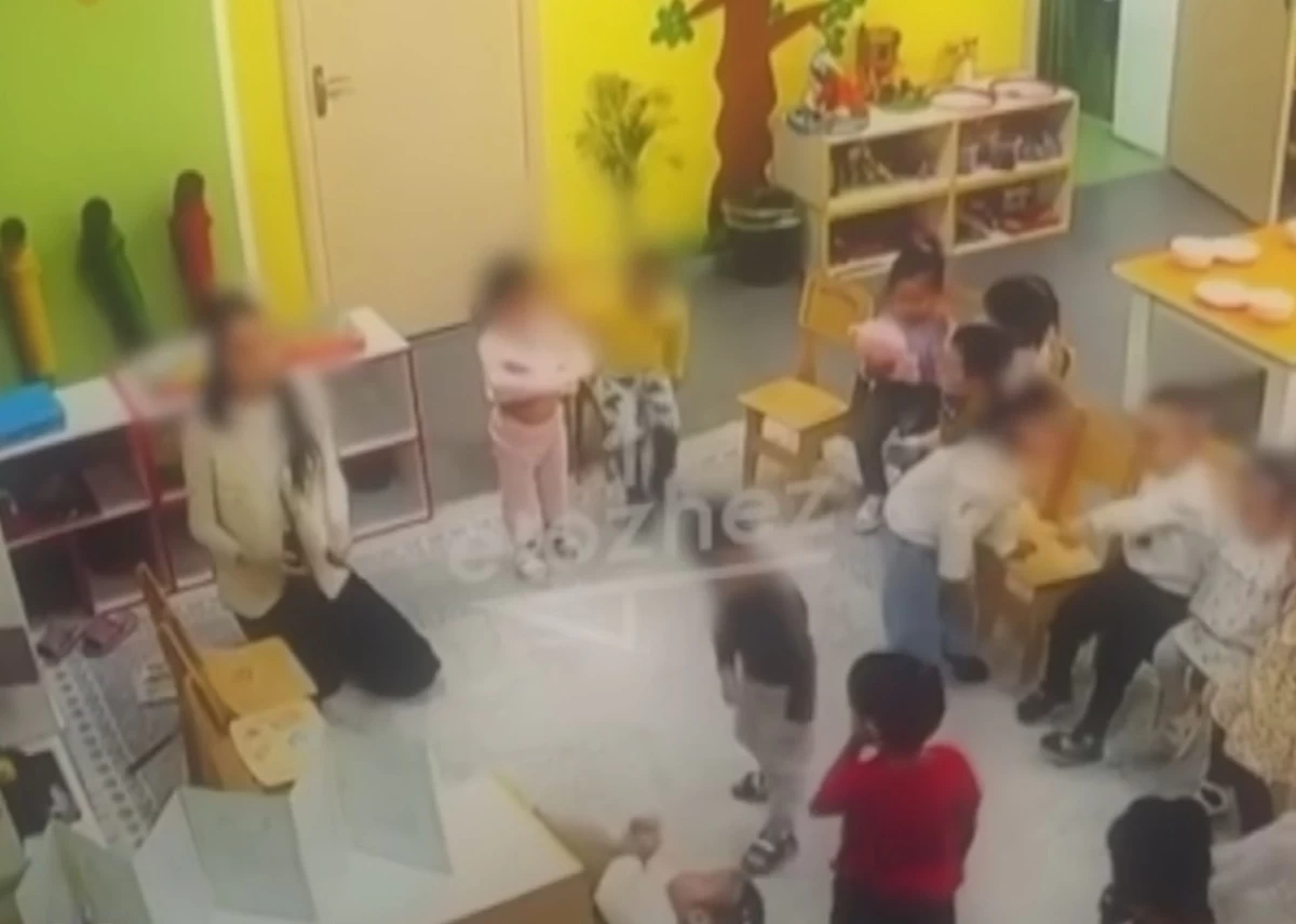 Бейнекамераға түсіп қалған жазбадан баланың бірі қызды еденге жығып, басқа балалардың оны кезекпен келіп ұрып жатқанын көруге болады. Бүлдіршіндер бір-бірлеп келіп, соғып, итеріп жатқанда 3 жасар қызды басқа балалардан тәрбиешісі арашалап қалған.