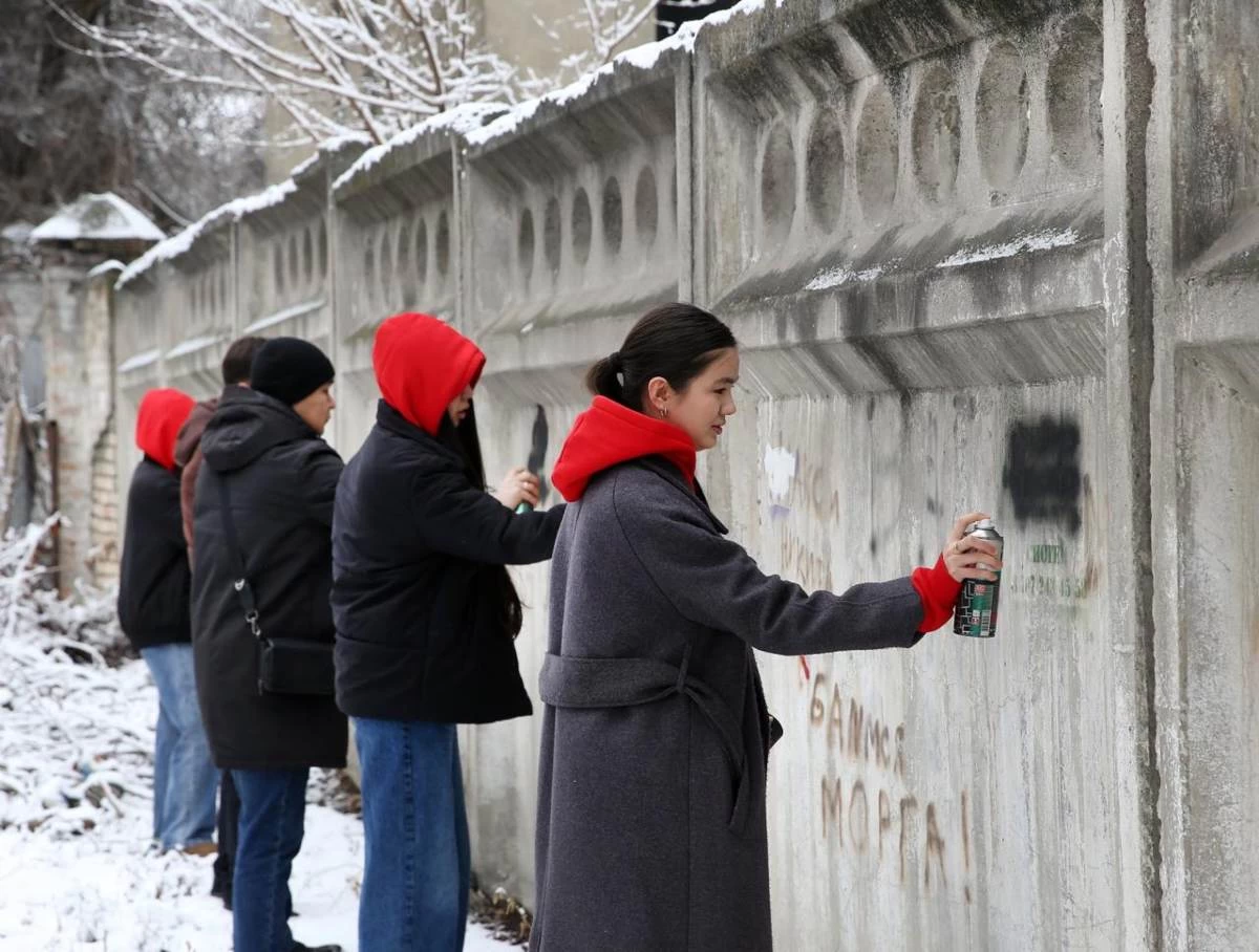 Заң мен тәртіп: Алматы жастары ғимараттардағы есірткі жарнамаларын жойды