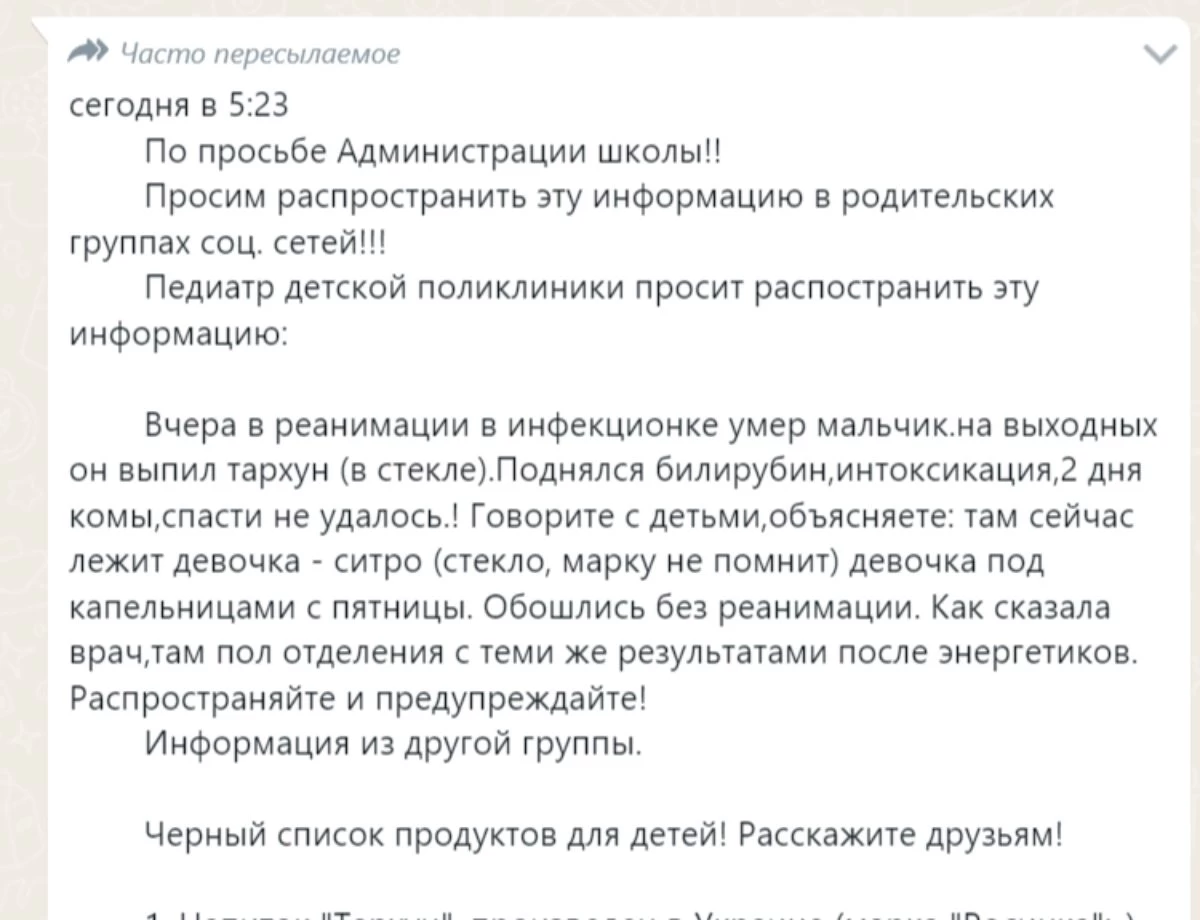 Газдалған сусын ішіп, уланған балалар туралы хабарлама ресейлік қолданушылар арасында 2019 жылы таралған.