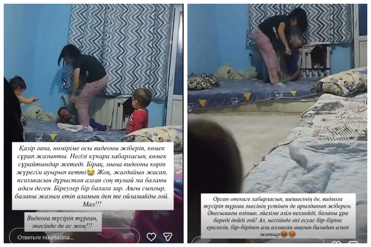 Жағдайды Instagram парақшасында журналист Жанар Нұртазина жариялады. Кадрдан әйелдің баланы жылу батареясына байлап, ұрып-соққанын көруге болады.
